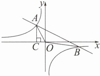 9. 如图,一次函数$y= mx+n的图象与反比例函数y= \frac {k}{x}的图象交于点A(-2,a)和点B(b,-1)$,过点 A 作 x 轴的垂线,垂足为 C.已知$△AOC$的面积为 4.