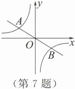7. 如图,正比例函数$y= kx(k≠0)的图象与反比例函数y= -\frac {6}{x}$的图象相交于 A,B 两点.若点 A 的横坐标是-3,则点 B 的坐标是