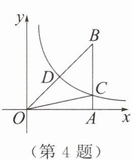 4. 设参法 如图,双曲线$y= \frac {k}{x}(x>0)$经过Rt△OAB的斜边OB的中点D,并与直角边$AB交于点C$。若$\triangle OBC$的面积为 6,则$k$的值为____