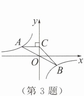 3. 中心对称性 如图,$\triangle ABC的顶点A$,$B在反比例函数y= -\frac {2}{x}$的图象上,且$AC⊥y轴于点C$。若边$AB经过原点O$,则$\triangle ABC$的面积为