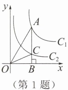 1. (2024 莆田月考)双曲线$C_{1}:y= \frac {k}{x}(k≠0,x>0)和C_{2}:y= \frac {1}{x}(x>0)$如图所示,$A是双曲线C_{1}$上的一点,过点$A作AB⊥x$轴,垂足为$B$,交双曲线$C_{2}于点C$,连接$OA$,$OC$。若$\triangle AOC$的面积为 2,则$k= $____