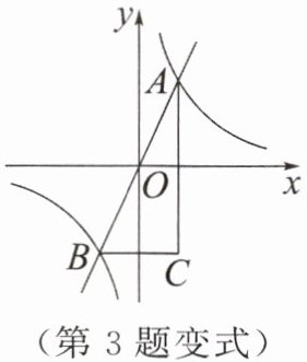 。变式 如图,正比例函数$y= kx(k≠0,k$为常数)与反比例函数$y= \frac {5}{x}的图象交于A$,$B$两点。若$BC// x$轴,$AC// y$轴,则$S_{\triangle ABC}= $