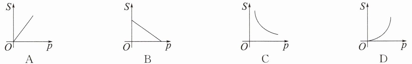 1. 当压力F(单位:N)一定时,物体所受的压强p(单位:Pa)与受力面积S(单位:$m^{2}$)之间的函数解析式为$p= \frac {F}{S}(S≠0)$,这个函数的图象大致是 (