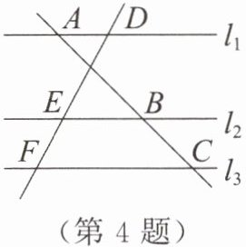 3. 如图,$l_1 // l_2 // l_3$,直线$a$,$b与l_1$,$l_2$,$l_3分别相交于点A$,$B$,$C和点D$,$E$,$F$。若$AB = 3$,$DE = 2$,$EF = 4$,则$BC$的长为(