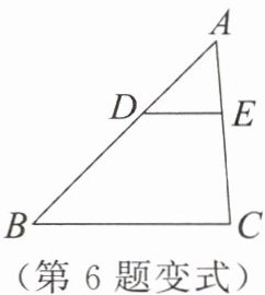 变式 如图,在$\triangle ABC$中,$DE // BC$,若$AD = 4$,$BD = 6$,$DE = 3$,则$BC$的长为______