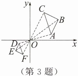 3. 如图,在平面直角坐标系中,$\triangle ABC与\triangle DEF$关于原点O位似,$OB= 2OE$.若$\triangle COB$的面积为4,则$\triangle FOE$的面积为 (