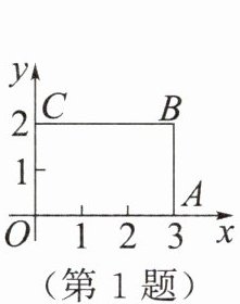 1. (2024绥化)如图,矩形OABC各顶点的坐标分别为O(0,0),A(3,0),B(3,2),C(0,2).若以原点O为位似中心,将这个矩形按相似比$\frac {1}{3}$缩小,则顶点B在第一象限对应点的坐标是 (