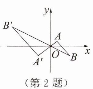 2. 如图,$\triangle AOB和\triangle A'OB'$相似,原点O是位似中心,相似比为$\frac {1}{2}$.若点$B'$的坐标为(-4,2),则点B的坐标为 (