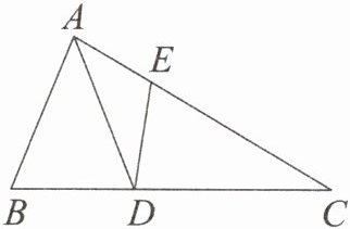 在$\triangle AED$和$\triangle ADC$中,$\left\{\begin{array}{l}\angle DAE = \angle CAD\\\angle ADE=\angle C\end{array}\right.$,根据两角分别相等的两个三角形相似,所以$\triangle AED\backsim\triangle ADC$。