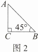 解:在$Rt\triangle ABC$中,$\angle C = 90^{\circ}$,$\angle B = 45^{\circ}$,$AC = 1$。