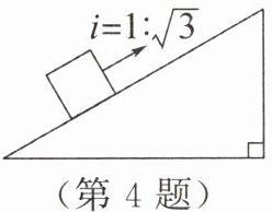 4. 如图,在一坡度 $i= 1: \sqrt{3}$ 的斜面上,若一木箱沿斜面向上推进了10m,则木箱升高了______