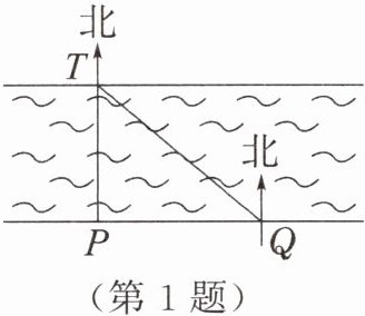 1. 如图,小亮为了测量一条河流的宽度,他在河岸边相距200m的P,Q两点分别测定对岸一棵树T的位置。若测得T在P的正北方向,且T在Q的北偏西50°方向,则河宽(PT的长)可以表示为 (