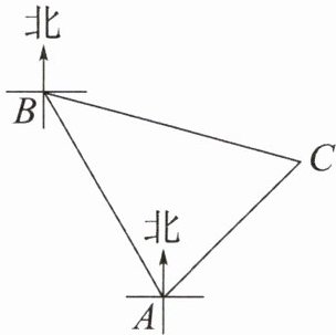 7. 如图,某海域有A,B两个港口,B港口在A港口的北偏西30°方向60n mile处,有一艘船从A港口出发,沿东北方向行驶一段距离后,到达位于B港口南偏东75°方向的C处。