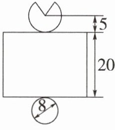 解:由题意,得此几何体由一个底面直径为8cm,母线长为5cm的圆锥和底面直径为8cm,高为20cm的圆柱组成.圆锥和圆柱的底面半径为4cm,圆锥的高为$\sqrt{5^{2} - 4^{2}} = 3(cm)$.