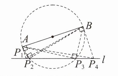 方法:分别过 A,B 作 AB 的垂线,再以线段 AB 为直径作圆,两垂线和圆与 l 的交点即为点 P
