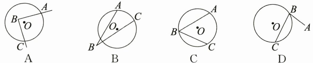 1. 下列图形中,$∠ABC$是圆周角的是 ()