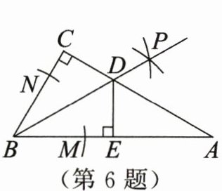 6. 如图,在$Rt△ABC$中,$∠C= 90^{\circ }$,以点B为圆心,任意长为半径画弧,分别交AB,BC于点M,N,再分别以点M,N为圆心,大于$\frac {1}{2}MN$的长为半径画弧,两弧交于点P,作射线BP交AC于点D,作$DE⊥AB$,垂足为E.下列结论不正确的是 ()