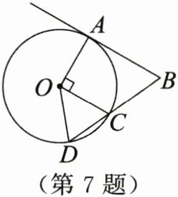7. 如图,AB是$\odot O$的切线,A为切点,连接OA,点C在$\odot O$上,$OC⊥OA$,连接BC并延长,交$\odot O$于点D,连接OD.若$∠B= 65^{\circ }$,则$∠DOC$的度数为 ()