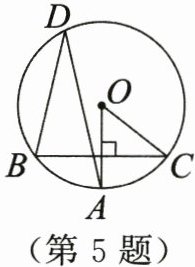 5. 如图,在$\odot O$中,$OA⊥BC$,若$∠ADB= 26^{\circ }$,则$∠AOC$的度数为 ()