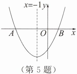 5. 如图,抛物线$y= ax^{2}+bx+c(a≠0)的对称轴是x= -1$,并与x轴交于A,B两点,已知$OA= 3OB$,有下列结论:①$abc>0$;②$(a+c)^{2}-b^{2}= 0$;③$3a+2c<0$;④若m为任意实数,则$am^{2}+b(m+1)≥a$.其中正确的序号为 (