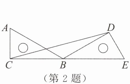 2.如图,若把含有30°角(∠ABC= 30°)的直角三角尺ABC绕点B顺时针旋转150°得到三角尺EBD,连接CD,则∠DCE的度数为 (