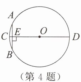 4.(2025福州十八中期中)“圆材埋壁”是我国古代数学名著《九章算术》中的一个问题:今有圆材,埋在壁中,不知大小,深一寸,锯道长一尺.问:径几何.用现在的几何语言表达为:如图,弦$AB$$\perp CD$,垂足为$E$,若$CE= 1$寸,$AB= 10$寸,则直径$CD$的长度是 (
