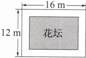 6. (2024青岛改编)如图,某小区要在长为16m,宽为12m的矩形空地上建造一个花坛,使花坛四周小路的宽度相等,且花坛所占面积为空地面积的一半,求小路的宽。