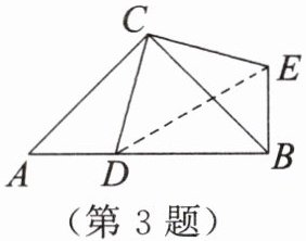 3. 一题多问如图,在$\triangle ABC$中,$BC= AC,∠ACB= 90^{\circ}$,D是线段AB上的动点.连接CD,将$\triangle ACD逆时针旋转到\triangle BCE$的位置.