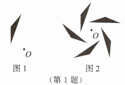 1. 利用图形的旋转可以设计出许多美丽的图案. 图 2 中的图案是由图 1 中的基本图形以点 O 为旋转中心,顺时针旋转 4 次而形成的,若每一次旋转的角度均为 α,则 α 的度数为 ()