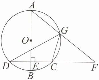 $\because$四边形$ADCG$内接于$\odot O$,$\therefore\angle FGC=\angle ADC$(圆内接四边形外角等于内对角)。