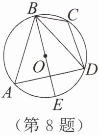 8. 如图,四边形 ABCD 是$\odot O$的内接四边形,BE 是$\odot O$的直径,连接 BD. 若$∠BCD= 2∠BAD$,则$∠EBD$的度数是()
