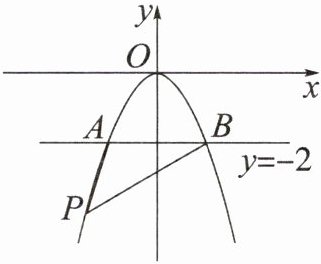 8. 如图,直线$y = -2与抛物线y = -x^{2}$交于A,B两点,点$P在抛物线y = -x^{2}$上,若$\triangle PAB的面积为2\sqrt{2}$,求点$P$的坐标.