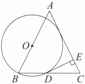 4. 如图,点$ O 是 \triangle ABC 的边 AB $上一点,以$ OB 为半径的 \odot O 交 BC 于点 D $,过点$ D 的切线交 AC 于点 E $,且$ DE \perp AC $.