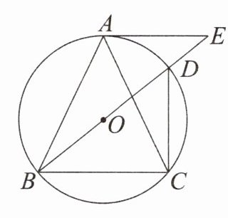 1. (2024 宜宾改编)如图,$ \triangle ABC 内接于 \odot O $,$ AB = AC = 10 $,过点$ A 作 AE // BC $,交$ \odot O 的直径 BD 的延长线于点 E $,连接$ CD $.