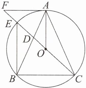 2. 如图,已知$ \triangle ABC 内接于 \odot O $,$ CO 的延长线交 AB 于点 D $,交$ \odot O 于点 E $,交$ \odot O 的切线 AF 于点 F $,且$ AF // BC $.