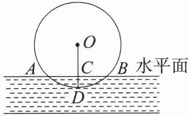 3. 水车是一种古老的提水灌溉工具,其结构示意图如图所示。已知$\odot O$的半径为3m,$AB$的长为4m,点$D$为水车的最低点,求水车的最低点到水平面的距离$CD$的长。