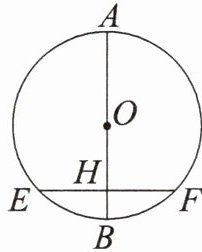 数学语言:如图,在$\odot O$中,$AB为直径且EH= FH$,则$AB⊥EF$,$\overset{\frown }{BE}= \overset{\frown }{BF}$,$\overset{\frown }{AE}= \overset{\frown }{AF}$。