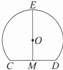 4. (教材$P_{89}T_{8}$)如图,这是一个隧道的横截面,它的形状是以点$O$为圆心的圆的一部分。如果$M是\odot O中弦CD$的中点,$EM经过圆心O交\odot O于E$,并且$CD= 4m$,$EM= 6m$。求$\odot O$的半径。