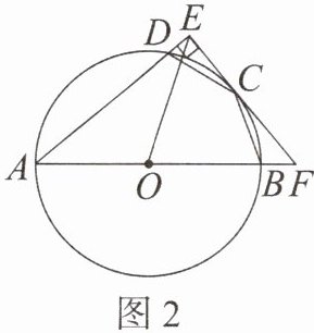 (2)如图 2,连接 OE,若 AD = 8,DE = 1,求 OE 的长.