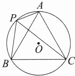 3. (教材$P_{90}T_{14}$)如图,A,P,B,C是$\odot O$上的四个点,$∠APC= ∠CPB= 60^{\circ }$.判断$\triangle ABC$的形状,并证明你的结论.