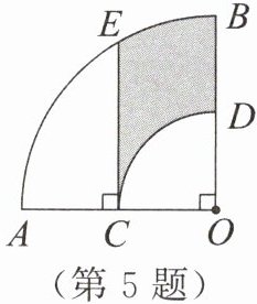 5. 如图,在扇形$AOB$中,$∠AOB= 90^{\circ }$,$C为OA$的中点,$CE⊥OA交弧AB于点E$,以点$O$为圆心,$OC的长为半径作弧CD交OB于点D$,若$OA= 4$,则阴影部分的面积为____。