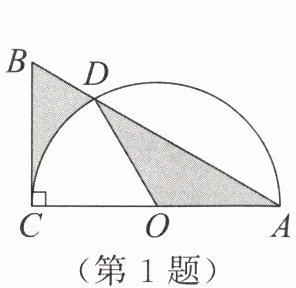 1. 如图,在$△ABC$中,$∠ACB= 90^{\circ }$,$∠B= 60^{\circ }$,$BC= 2$,若以$AC$为直径作半圆,交$AB边于点D$,点$O$为圆心,连接$OD$,则图中阴影部分的面积是____。