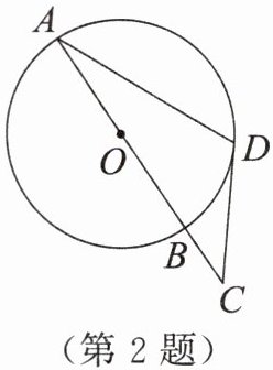 2. 如图,$AB是\odot O$的直径,点$D在\odot O$上,过点$D作\odot O的切线DC交AB的延长线于点C$.若$BC= 4,CD= 8$,则$\odot O$的半径为____.