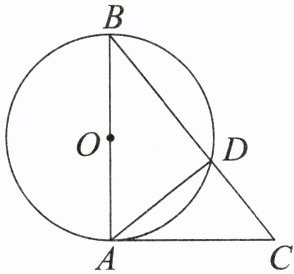 - 根据切线的判定定理:经过半径的外端并且垂直于这条半径的直线是圆的切线,$AB$是$\odot O$的半径,$AC\perp AB$,所以$AC$是$\odot O$的切线。