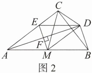 (2)如图 2,已知点 D 和边 AC 上的点 E 满足$ME⊥AD$于点 F,$DE// AB,EF = \sqrt {3}$,连接 CD,求 CD 的长.