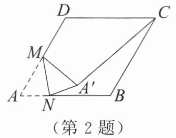 2. 如图,在边长为 2 的菱形 ABCD 中,$∠A = 60^{\circ }$,M 是边 AD 的中点,N 是边 AB 上的一动点.若将$△AMN$沿 MN 所在直线翻折得到$△A'MN$,连接$A'C$,则$A'C$长度的最小值是____.