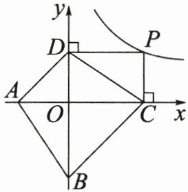 问题3:如图,已知点$A(-2,0)$,$B(0,-3)$,点$P为双曲线y = \frac{6}{x}$在第一象限内的点.过点$P作PC \perp x轴于点C$,$PD \perp y轴于点D$.试求出四边形$ABCD$面积的最小值,并说明此时四边形$ABCD$的形状.