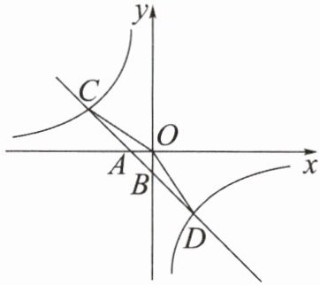 1. 如图,已知一次函数 $ y = - x - 1 $ 的图象与 $ x $ 轴、$ y $ 轴分别交于 $ A $,$ B $ 两点,与反比例函数 $ y = - \frac { 6 } { x } $ 的图象分别交于点 $ C ( - 3, m ) $,$ D ( 2, - 3 ) $。