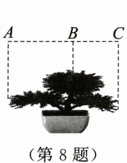 8. 如图,一个盆景的横向分布近似满足最具美感的黄金分割比,若点B为AC的黄金分割点$(AB>BC)$,则$\frac {BC}{AB}= $ ()