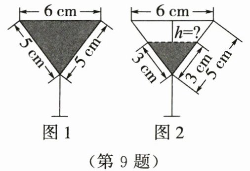 9. 装满了液体的高脚杯的示意图如图1所示,用掉部分液体后的示意图如图2所示,根据图中数据,此时液面距离杯口的距离h为 ()